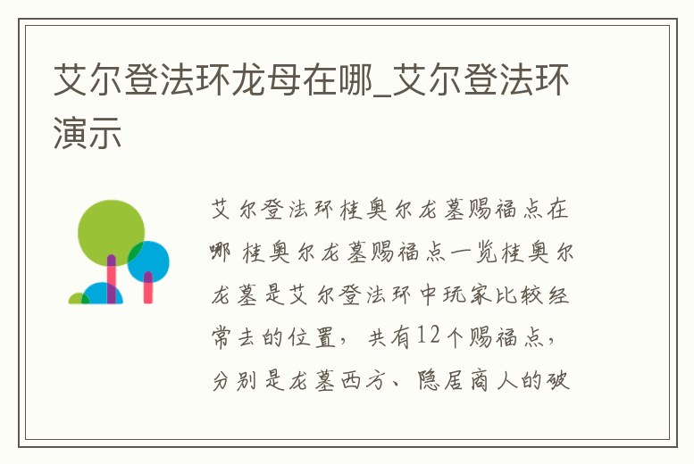 桂奧爾龍墓是艾爾登法環中玩家比較經常去的位置,共有12個賜福點,分別是龍墓西方、隱居商人的破屋、法洛斯要塞、龍墓的岔路、雷恩魔法師塔、法姆大橋、野獸神殿、瑟利亞隱藏洞窟、龍墓洞窟、蓋利德神授塔中段、蓋利德神。