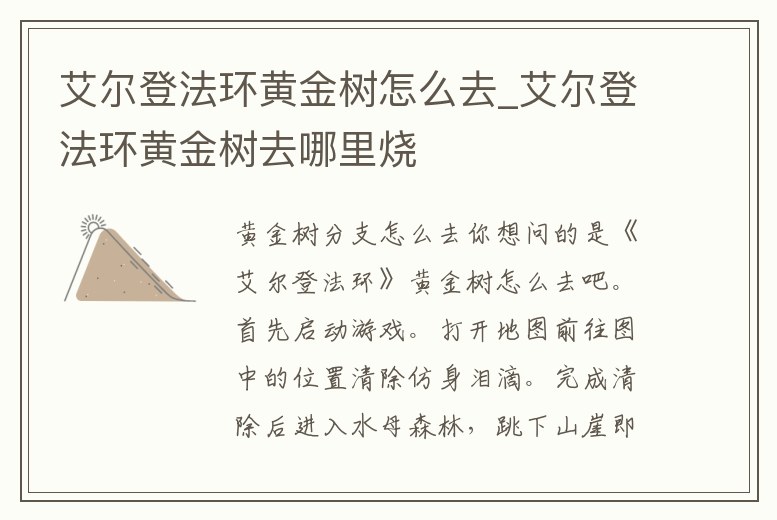 艾爾登法環黃金樹怎么去_艾爾登法環黃金樹去哪里燒