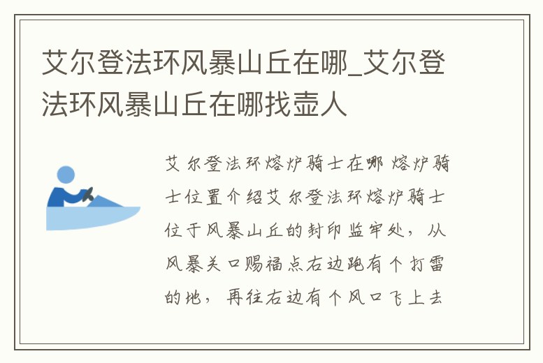 艾爾登法環風暴山丘在哪_艾爾登法環風暴山丘在哪找壺人