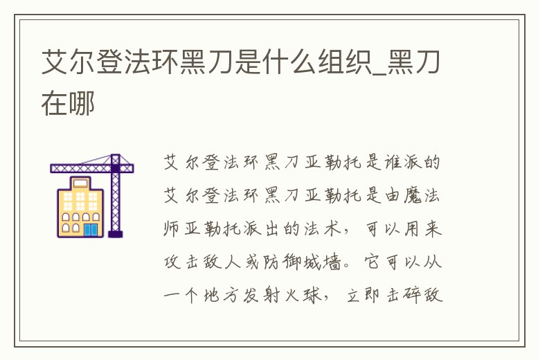 艾爾登法環黑刀亞勒托是由魔法師亞勒托派出的法術,可以用來攻擊敵人或防御城墻。它可以從一個地方發射火球,立即擊碎敵人。此外,它還可以在周圍創造一股護盾,使城墻變得堅不可摧。