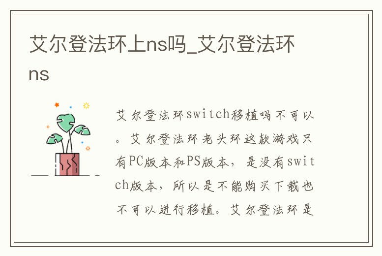 不可以。艾爾登法環老頭環這款游戲只有PC版本和PS版本,是沒有switch版本,所以是不能購買下載也不可以進行移植。艾爾登法環是由FromSoftware開發的奇幻動作RPG游戲,以GeorgeR.R.Martin為打造的神話為基礎,在深奧而龐大的。