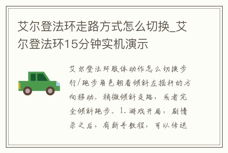艾爾登法環走路方式怎么切換_艾爾登法環15分鐘實機演示