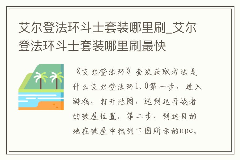 艾爾登法環(huán)斗士套裝哪里刷_艾爾登法環(huán)斗士套裝哪里刷最快