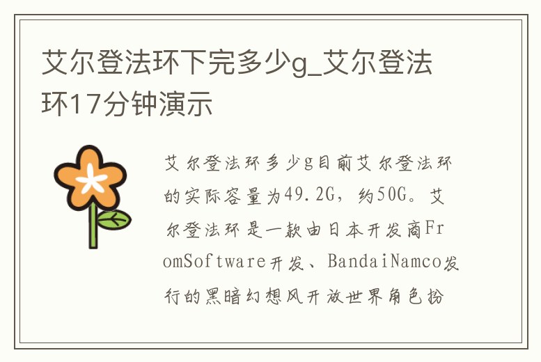 艾爾登法環下完多少g_艾爾登法環17分鐘演示