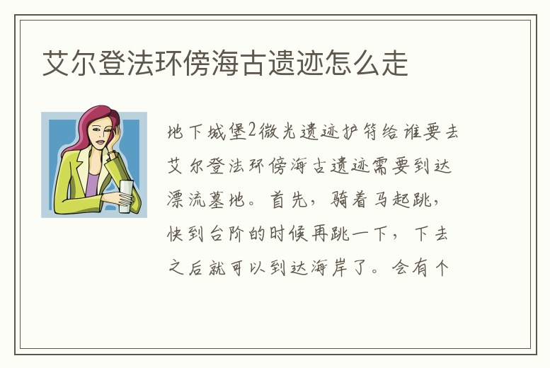 要去艾爾登法環傍海古遺跡需要到達漂流墓地。首先,騎著馬起跳,快到臺階的時候再跳一下,下去之后就可以到達海岸了。會有個敵人坐在篝火邊,注意:他站起來砍人。這里有個洞窟可以走到初始漂流墓地,從建筑里下去就到達傍。