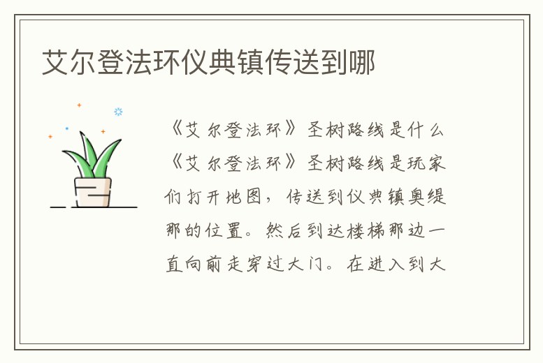 艾爾登法環儀典鎮傳送到哪