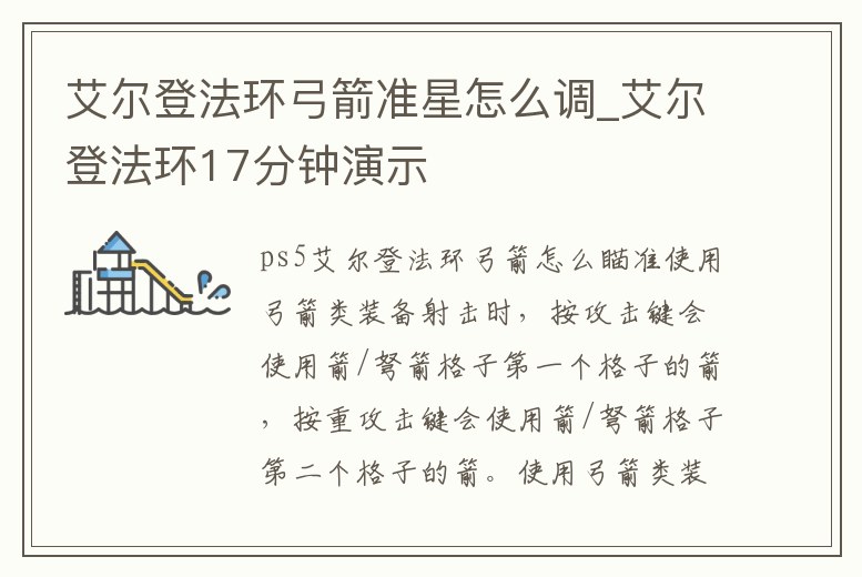 艾爾登法環弓箭準星怎么調_艾爾登法環17分鐘演示