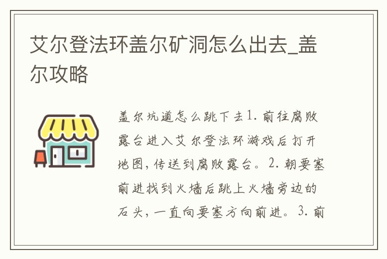 艾爾登法環蓋爾礦洞怎么出去_蓋爾攻略