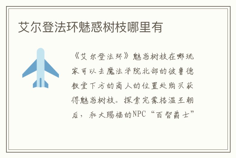 1、艾爾登法環魅惑樹枝哪里買