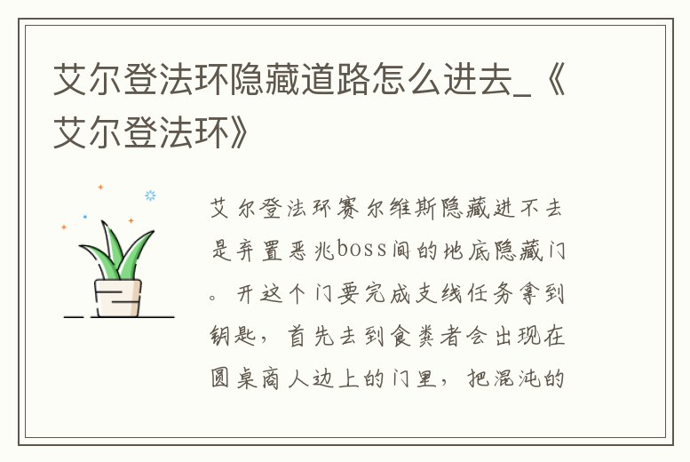 首先打開艾爾登法環游戲地圖,傳送到王室領地廢墟;然后往廢墟的東部一直走,即可看到一個隱藏門進入;最后對準地面砍一刀,即可開啟地下室的門?!栋瑺柕欠ōh》(英語:Elden Ring,日語:エルデンリング)是一款由日本。