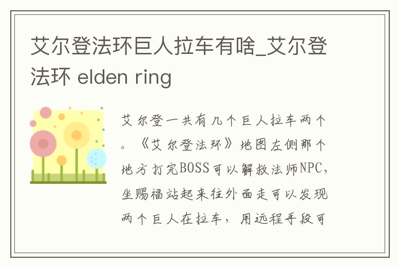 艾爾登法環巨人拉車有啥_艾爾登法環 elden ring