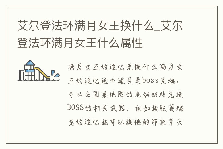 艾爾登法環滿月女王換什么_艾爾登法環滿月女王什么屬性
