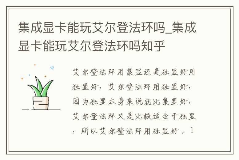集成顯卡能玩艾爾登法環嗎_集成顯卡能玩艾爾登法環嗎知乎