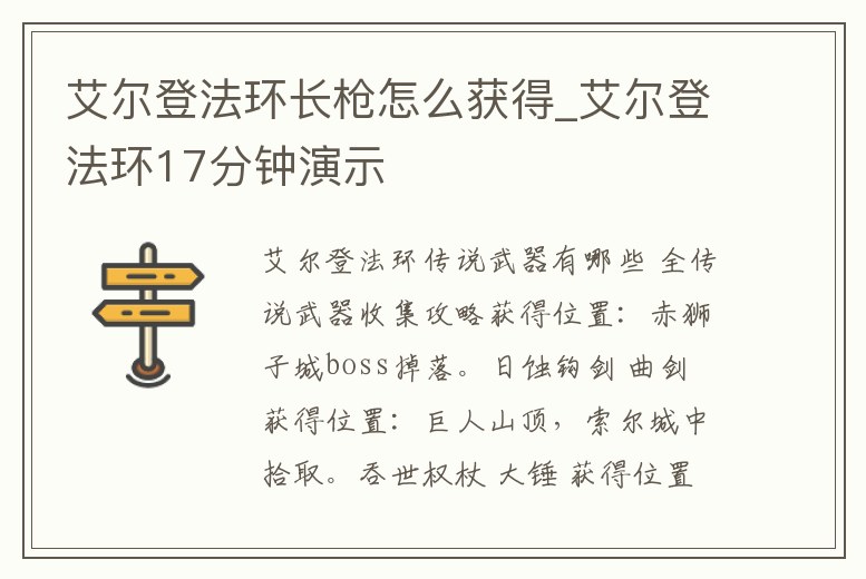 艾爾登法環全武器獲取方法速覽 全武器收集攻略在艾爾登法環中,所有裝備都可以通過簡單的方式獲得,例如拾取,開啟寶箱,擊敗BOSS或者完成任務等等,很少有什么裝備玩家沒有辦法獲得,只是收集的多少而已,下面我就給大家帶來游戲的全武器獲取方法速覽,幫助大家完成武器方面的。1、艾爾登法環傳說武器怎么獲得 傳說中武器獲得方法介紹艾爾登法環傳說中武器