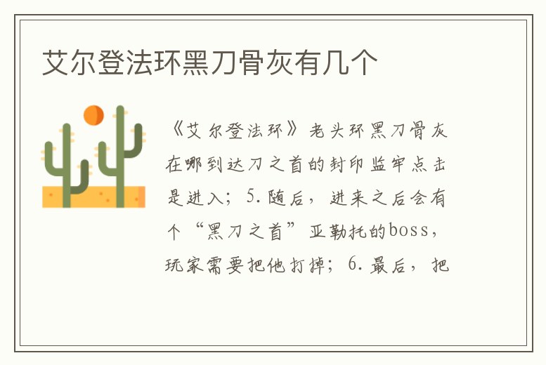 6個。《艾爾登法環》中一共有6個傳說骨灰,使用后就可以召喚出強大的靈魂協助戰斗。