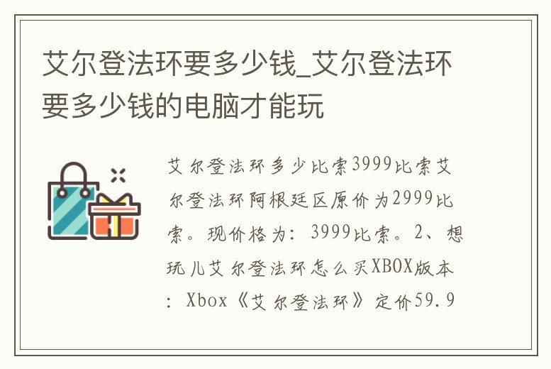 - 艾爾登法環(huán)要多少錢_艾爾登法環(huán)要多少錢的電腦才能玩