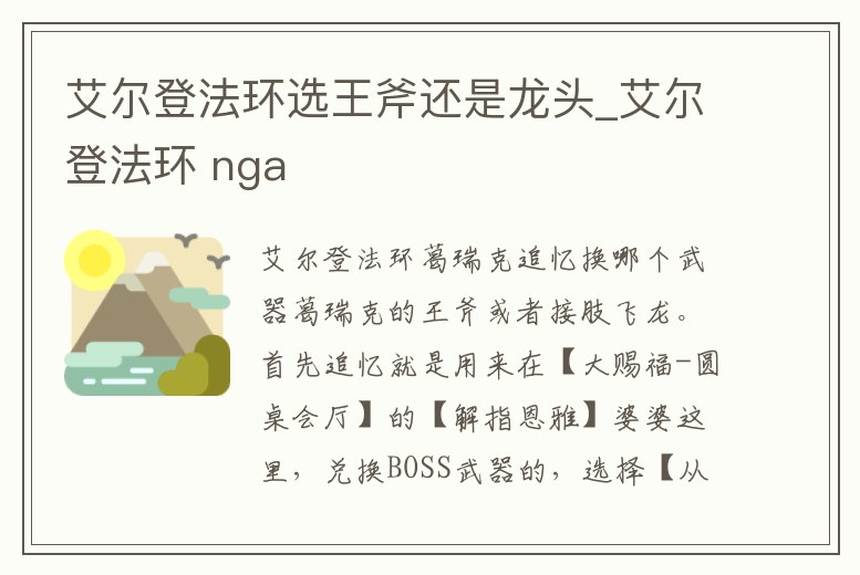 艾爾登法環選王斧還是龍頭_艾爾登法環 nga