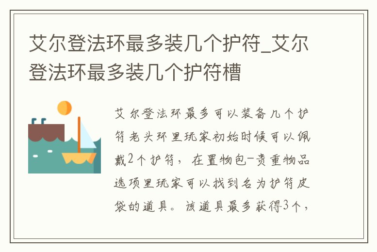 - 艾爾登法環(huán)最多裝幾個護符_艾爾登法環(huán)最多裝幾個護符槽
