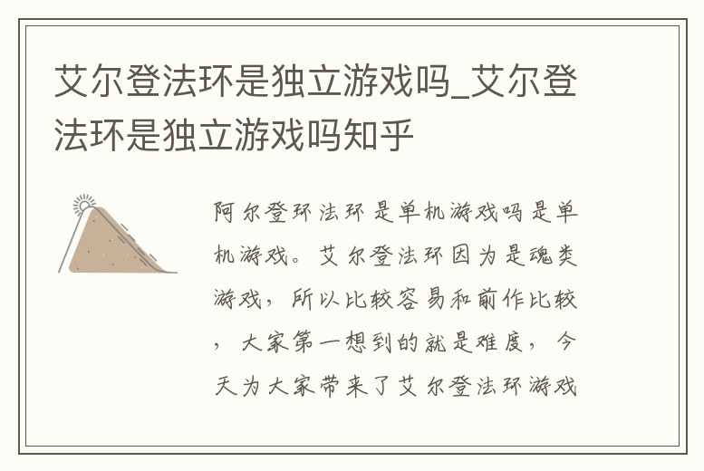艾爾登法環是獨立游戲嗎_艾爾登法環是獨立游戲嗎知乎
