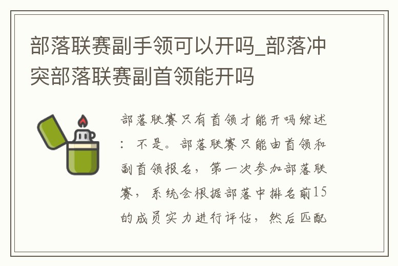 部落聯賽副手領可以開嗎_部落沖突部落聯賽副首領能開嗎