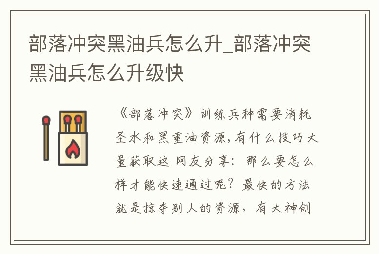 - 部落沖突黑油兵怎么升_部落沖突黑油兵怎么升級(jí)快