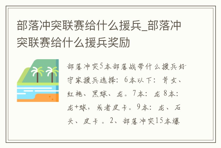 部落沖突聯賽給什么援兵_部落沖突聯賽給什么援兵獎勵