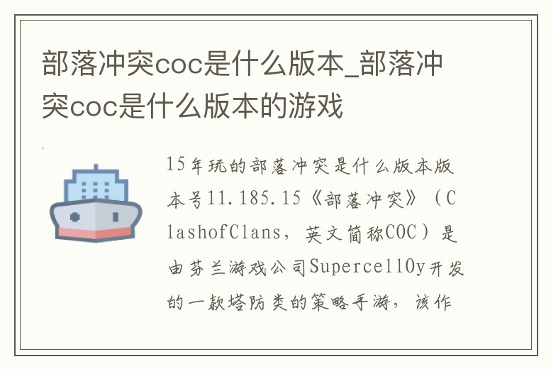 部落沖突coc是什么版本_部落沖突coc是什么版本的游戲