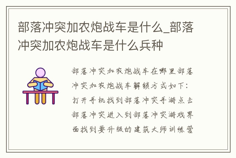 部落沖突加農(nóng)炮戰(zhàn)車是什么_部落沖突加農(nóng)炮戰(zhàn)車是什么兵種