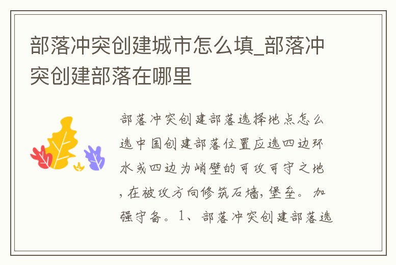 部落沖突創建城市怎么填_部落沖突創建部落在哪里