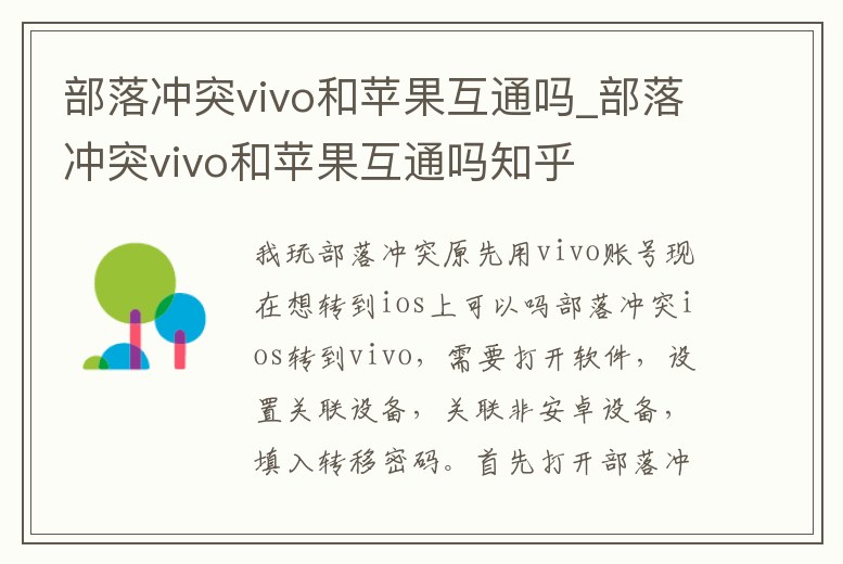 部落沖突vivo和蘋果互通嗎_部落沖突vivo和蘋果互通嗎知乎