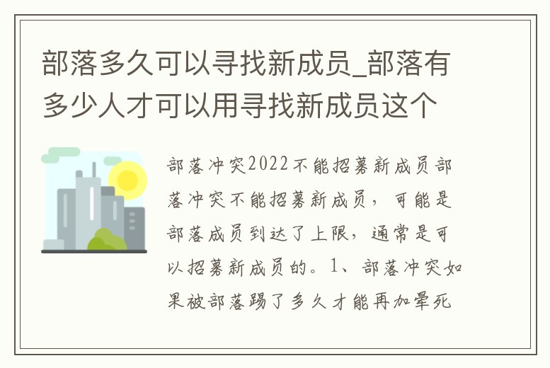 部落多久可以尋找新成員_部落有多少人才可以用尋找新成員這個功能
