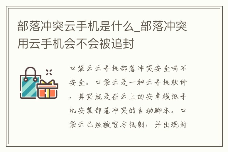 部落沖突云手機是什么_部落沖突用云手機會不會被追封