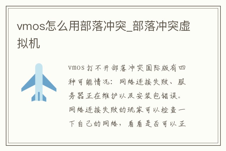 vmos打不開部落沖突國際版有四種可能情況:網絡連接失敗、服務器正在維護以及安裝包錯誤。網絡連接失敗的玩家可以檢查一下自己的網絡,看看是否可以正常聯網,如果可以正常聯網,那么就是其他問題,如果不能正常聯網,把網絡重新連接好即可;若服務器正在維。1、部落沖突的雷人輔助為啥在VMOS上開不了了網友分享:這應該是你運行的太久了,有可能會被官方監測,所以說就會這樣。