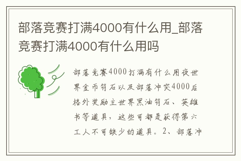 部落競賽打滿4000有什么用_部落競賽打滿4000有什么用嗎
