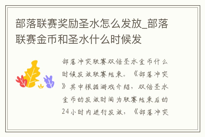 聯賽結束。《部落沖突》其中根據游戲介紹,雙倍圣水金幣的發放時間為聯賽結束后的24小時內進行發放,《部落沖突》是由芬蘭游戲公司SupercellOy開發的一款塔防類的策略手游。