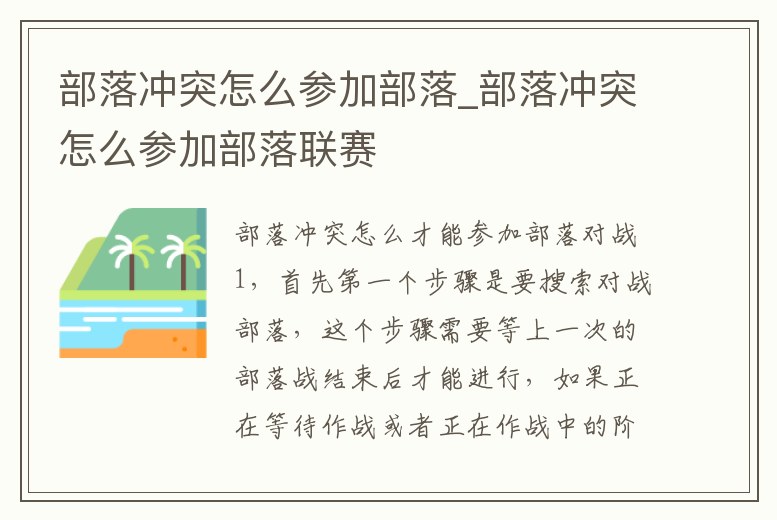 6、部落戰爭怎樣加入部落?加入部落的條件是什么