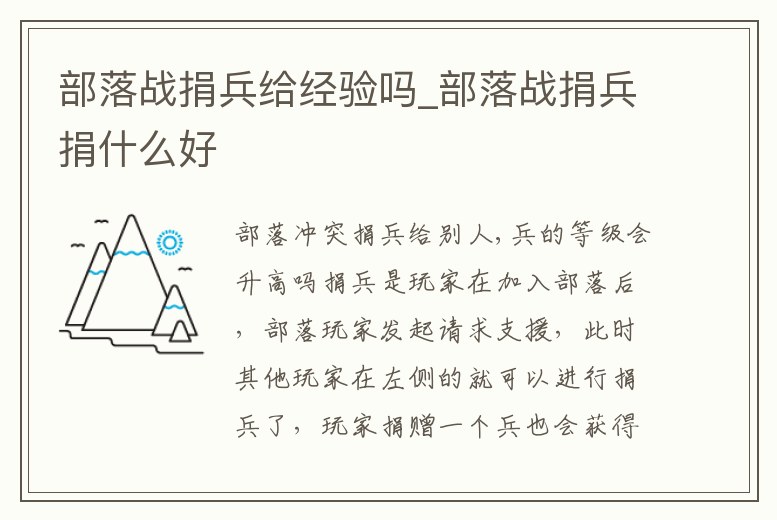 部落戰(zhàn)捐兵給經(jīng)驗(yàn)嗎_部落戰(zhàn)捐兵捐什么好
