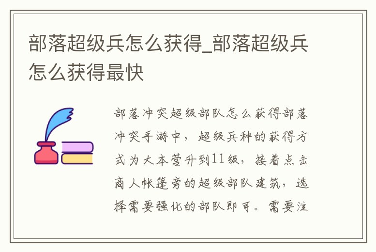- 部落超級(jí)兵怎么獲得_部落超級(jí)兵怎么獲得最快