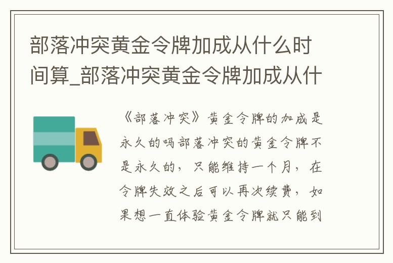 部落沖突黃金令牌加成從什么時間算_部落沖突黃金令牌加成從什么時間算的