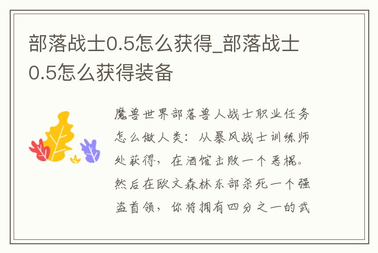部落戰士0.5怎么獲得_部落戰士0.5怎么獲得裝備