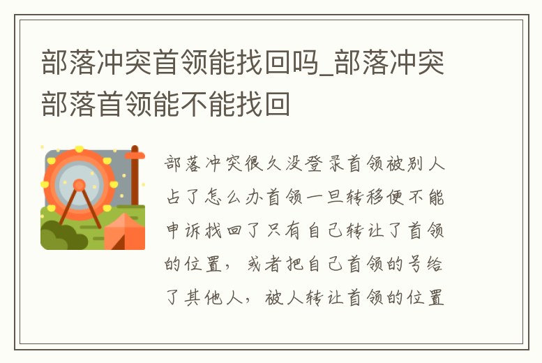 部落沖突首領能找回嗎_部落沖突部落首領能不能找回