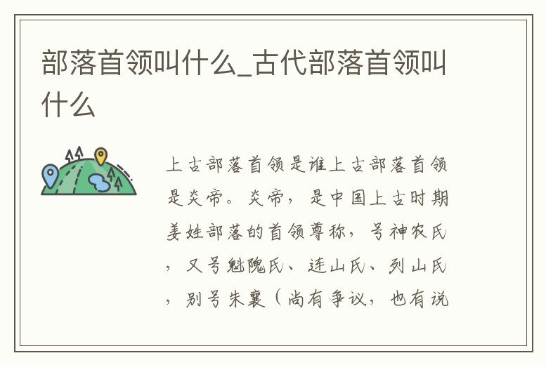 上古部落首領是炎帝。炎帝,是中國上古時期姜姓部落的首領尊稱,號神農氏,又號魁隗氏、連山氏、列山氏,別號朱襄(尚有爭議,也有說朱襄氏部落曾有三代首領尊號炎帝)。傳說姜姓部落的首領由于懂得用火而得到王位,所以稱為炎。