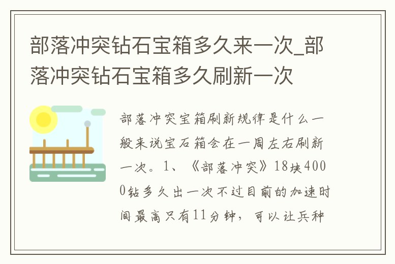 部落沖突鉆石寶箱多久來一次_部落沖突鉆石寶箱多久刷新一次