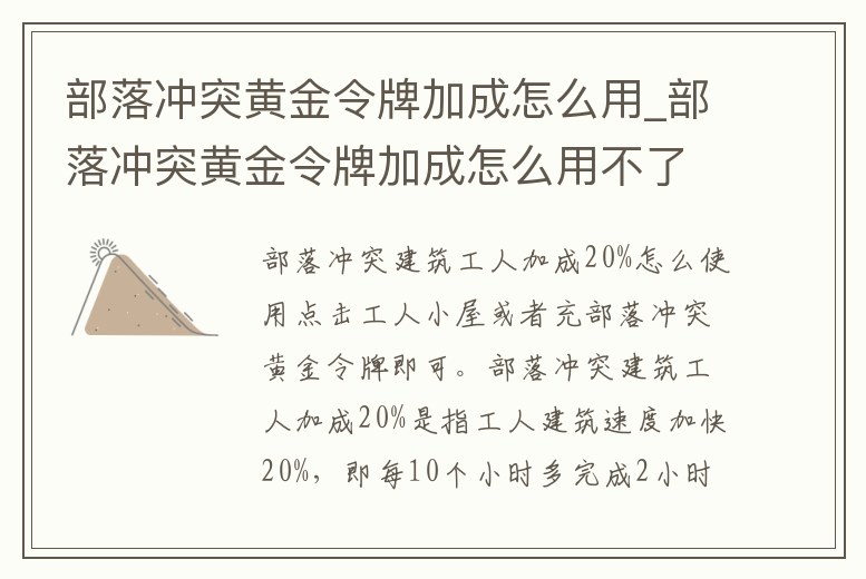 部落沖突黃金令牌加成怎么用_部落沖突黃金令牌加成怎么用不了
