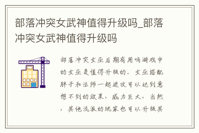 部落沖突女武神值得升級嗎_部落沖突女武神值得升級嗎