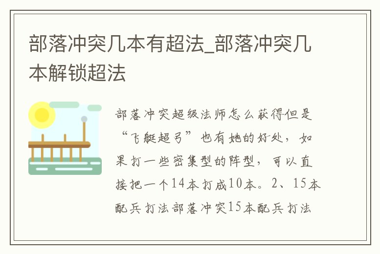 部落沖突幾本有超法_部落沖突幾本解鎖超法