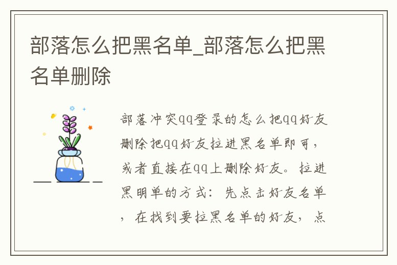 - 部落怎么把黑名單_部落怎么把黑名單刪除