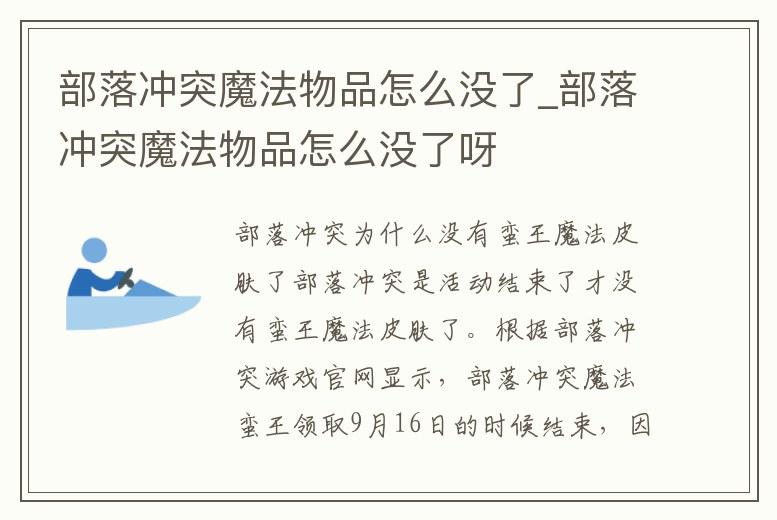 - 部落沖突魔法物品怎么沒了_部落沖突魔法物品怎么沒了呀