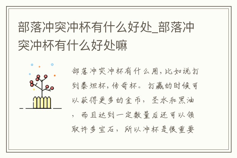 部落沖突沖杯有什么好處_部落沖突沖杯有什么好處嘛
