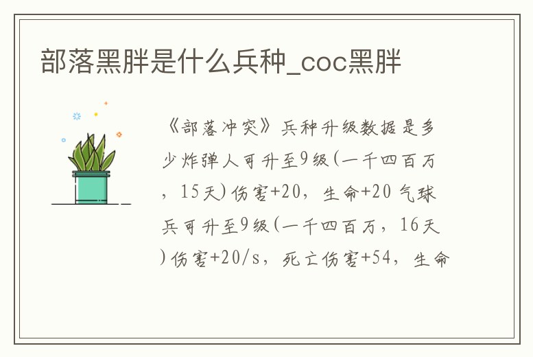 部落黑胖是什么兵種_coc黑胖
